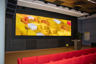 Im RSD Saal der Bausparkasse Schwäbisch Hall wurde von Mevis.tv eine LED-Wand unserer Upanel II PRO-Serie auf einer Fläche von 7,3 m x 2,0 m realisiert. Mit einem Pixelpitch von 0,9 mm setzt die Installation im hausinternen Kino ein Highlight für Bildschärfe sowie Detailtiefe bei Konferenzen und Präsentationen.